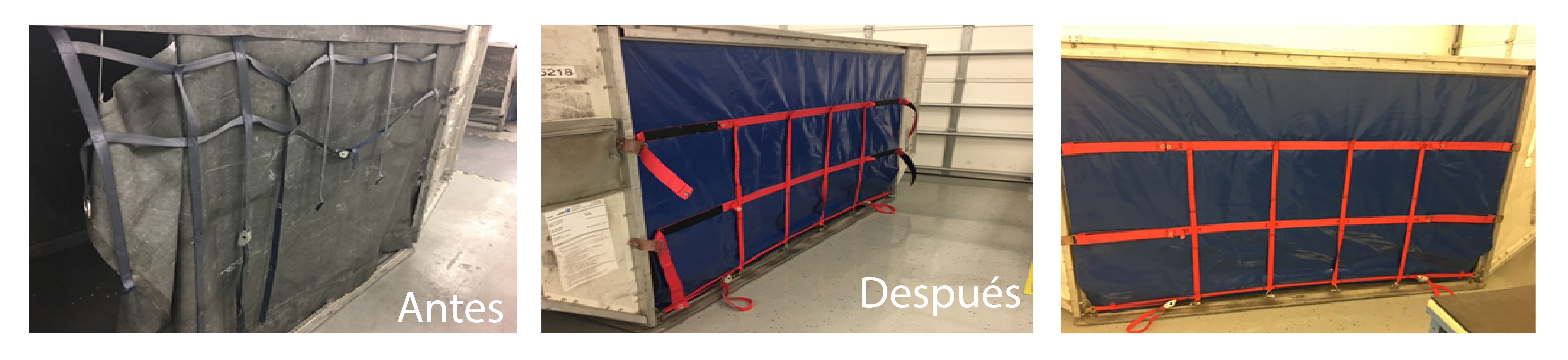 Reparamos las cortinas de los contenedores con materiales resistentes para que las cargas lleguen a su destino en las mejores condiciones y la mayor seguridad posible. Las cintas cuentan con costuras reforzadas y ganchos metálicos certificados.